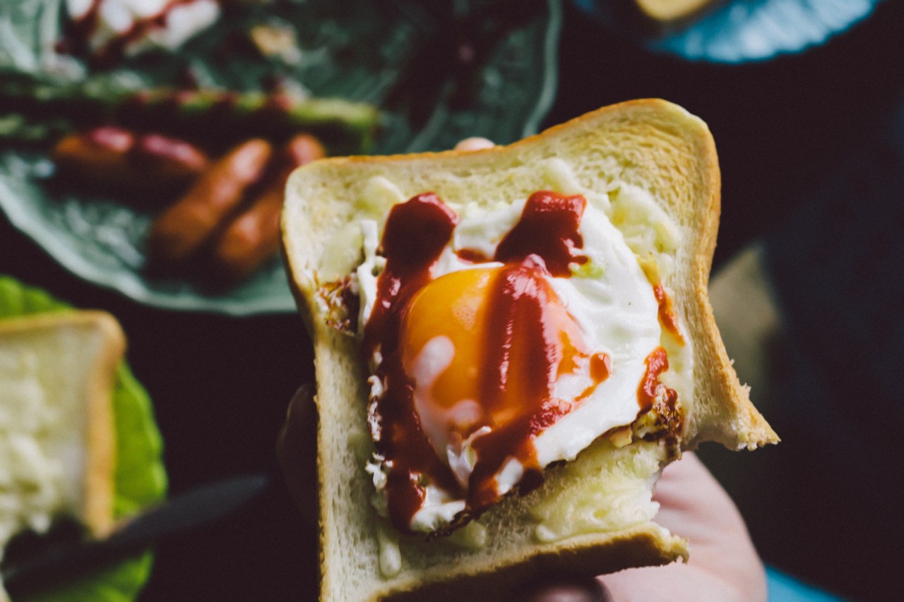 ソーセージと目玉焼きをフライパンに落として塩と胡椒をふって、パンをオーブンへぽんって突っ込む。お湯を沸かしてる間にコーヒーの準備をする。バナナをペティナイフでカットしながら夫を呼ぶ、「ご飯、もうできるよ!起きてー」。梃子がちょこんと座ってキッチンを覗いてる、「おはよう、てっちゃん。お腹すいた?」。