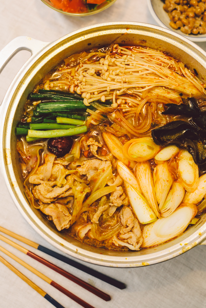 さくっと火鍋 中華 14.4,2020 夕方、キッチンで作業をしてたら無性に焼肉が食べたくなって、いかんいかん、作業に集中するも、今度は無性に火鍋が食べたくなる。材料もそこそこあるし、今夜は火鍋にしよう。白湯は無いので、辛味はマイルド。止まらない食欲のままにスープまで綺麗に食べた。 さくっと火鍋 2人分 鍋に材料1を入れて火にかける。 香りがたったら材料2を入れて炒めて、火が通ったら材料3を炒める。 材料4を入れて煮込む。 ▽ 材料1 ▽ 胡麻油 大さじ4 花椒ホール 大さじ1 鷹の爪 4本ーみじん切り ▽ 材料2 ▽ ニンニク・生姜 1片ーみじん切り 長ネギ 1/2本ーみじん切り ▽ 材料3 ▽ 豆板醤 大さじ1〜2 ▽ 材料4 ▽ 五香粉 大さじ1 干しエビ 大さじ1 干ししいたけ 3〜4枚ー軽く水に戻して薄くスライス クコの実 小さじ1 なつめ 1個 鶏ガラスープの素 大さじ1 酒 大さじ1 水 3〜4カップ ▽ 材料5 ▽ 好きな具材。なんでも。 豚肉、キャベツ、きくらげ、青葱、ニラ、葱、えのき、マロニー 共有: クリックして X で共有 (新しいウィンドウで開きます) X Facebook で共有するにはクリックしてください (新しいウィンドウで開きます) Facebook クリックして Pinterest で共有 (新しいウィンドウで開きます) Pinterest クリックして友達にメールでリンクを送信 (新しいウィンドウで開きます) メールアドレス いいね 読み込み中…