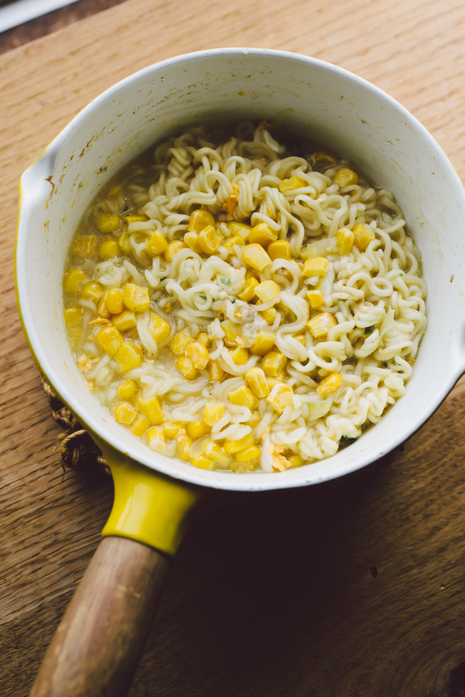 「うげーきもちわるー。」泣く泣く捨てる。どうしよう、今から何かまた作るのも面倒だしな。「サッポロ一番にしようや。」夫が言った。卵2つ、冷凍コーンを入れて3分で塩ラーメンが出来上がった。こういう時の夫の閃きはすごい。中目黒の友人らにアイデアマンと言われるのも少しだけわかる。「サッポロ一番ってすごいね。」喜んで言うと「世の中の人はお昼にこういうものを食べてるんだよ。」「そうなの?」「そうだよ。」なんか違う気がした。今日は楽しいランチだった。