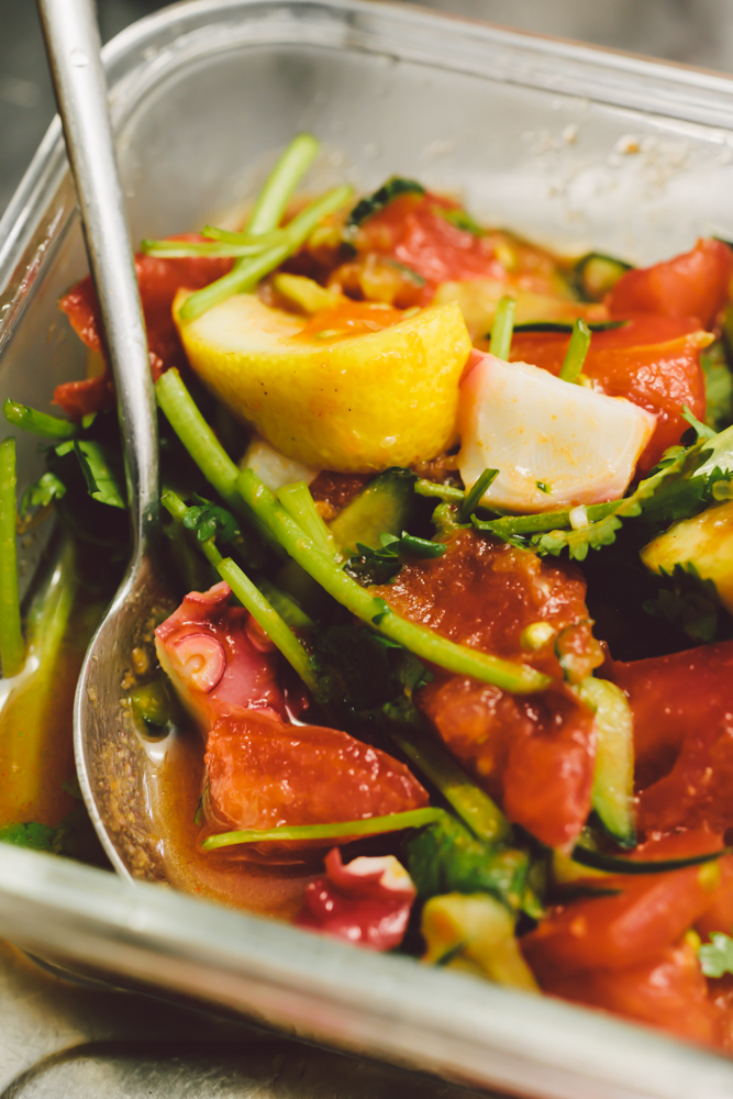 トムヤムサラダ エスニック 12.5,2020 大好きな我が家の夏のサラダ。 トムヤムサラダ ボールにトマトを入れて、綿棒(硬いものなら何でも)の後ろで潰す。 トマトが崩れたら胡瓜を入れて潰す。潰しすぎない程度でパクチー以外の材料を入れてスプーンで混ぜ合わせる。最後にパクチーを混ぜる。辛さがたりなかったらトムヤムペーストを。塩見が足らなかったらパクチーを。甘みが足らなかったら砂糖で調整する。 ▽ 材料 ▽ トマト 1個ーざく切り 胡瓜 1/2本ー細切り 茹で蛸 1本 [海老でも、無くても] パクチー 人束ー3cmほどに切る レモン 1/4個ーくし切り トムヤムペースト 大さじ1ほど ナンプラー 小さじ1〜2 きび砂糖 大さじ1 共有: X で共有 (新しいウィンドウで開きます) X Facebook で共有 (新しいウィンドウで開きます) Facebook Pinterest で共有 (新しいウィンドウで開きます) Pinterest 友達にメールでリンクを送信 (新しいウィンドウで開きます) メールアドレス いいね 読み込み中…
