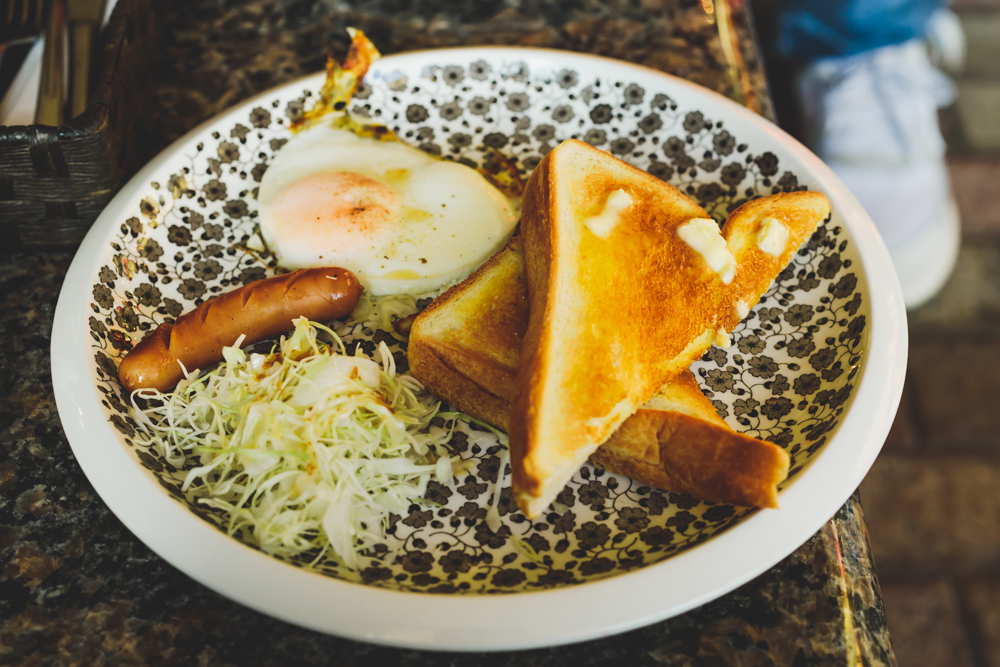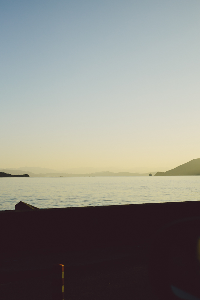 真っ暗の中起きて、山若君と朝6時からやってる港にある喫茶店に向かった。水平線の向こうに太陽が上がり始めてる。朝ごはんを食べながらお喋りする。しばらくすると、山若君は仕事を始めた。