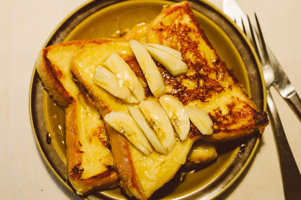 朝食はフレンチトーストを焼いた。蜂蜜をたっぷりかけて。
