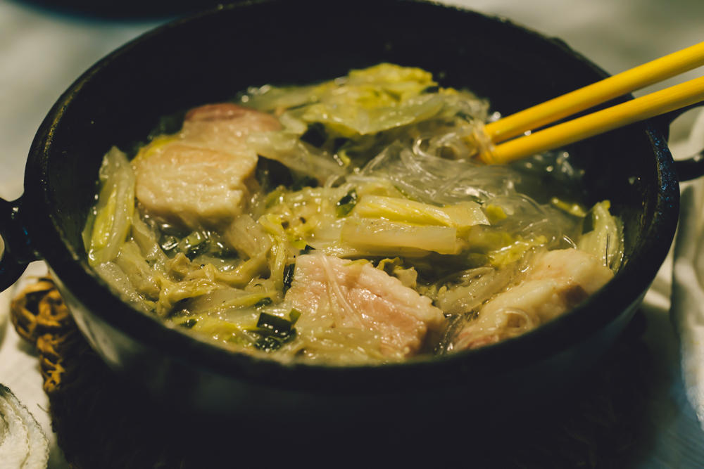 冷蔵庫を開けるけど、なんだかな。とりあえずお風呂。昨日茹でたブロッコリーをマヨネーズにつけて、かじりながら冷蔵庫を眺める。先週に常温で漬けておいた発酵白菜。少し黄身がかかっていい色してる。一口食べてみると、最高に酸っぱい!今日は鍋だな。何日か塩漬けにしておいた塩豚が冷蔵庫の奥にある。一緒に発酵鍋にしよう。ビールを飲みながら、鉄鍋に塩豚を放置。一時間くらい煮込みながら、メールをする。2本目は酎ハイ。水が減ったところで、発酵白菜とその汁を鍋に入れる。あー勿体無いって思いながら入れた。本当はそのまま全部食べてしまいたい。今はちょっと酎ハイを飲みたいから、グツグツさせておく。もう少ししたら春雨を入れて、美味しい煮汁を吸わせよう。