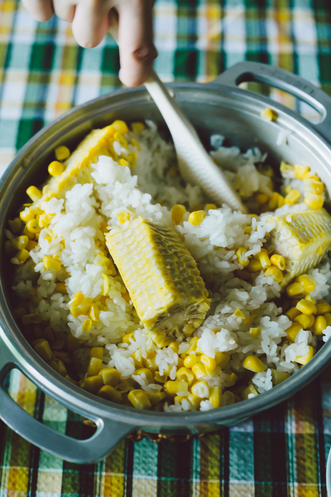 「トウモロコシをカレーっぽく炒めるのと、トウモロコシご飯どっちがいい?」