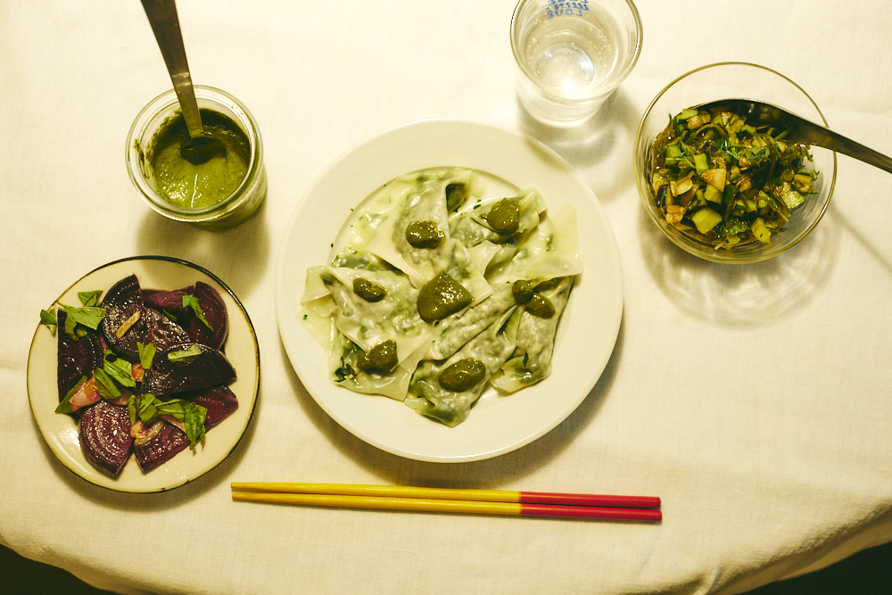 長野のカナちゃんが送ってくれた野菜で、午後はずっと料理をしてた。最高な気分。そして、最高なレシピを発見した。バジルと青唐辛子のソースがこの上なく美味しい!今日の私、なかなか冴えてる。