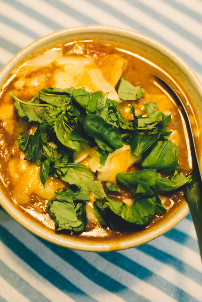 一昨日のスープカレーがあまりに美味しくって、今夜もスープカレー。ベランダからバジルをもいできて、ちぎる。ああ、いい香り。