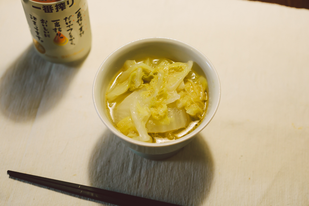 鍋に油をひいて、豚肉を炒める。白菜も軽く炒める。やっぱり、なんかポン酢が食べたい。椎茸のスライス、水を入れて、ゆっくり白菜がとろとろになるまで煮込む。途中、ごま油をふた回し程かける。ことこと、しっかり煮込む。