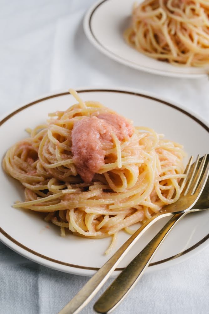 30才そこそこで、師匠の元を独立してぷらぷらしていた私は日々明太パスタに埋もれていた。弟子入りしてみたものの、やっぱり商業は合わないと直ぐにやめたくなったアシスタント業、師匠に迷惑をかけたくないの一心で続けた。そんなアシスタント業をふんわり卒業した頃だった。夫がやっていたバーの料理を私が担当していて、口うるさい夫(本人曰く「全国をツアーで回っているから俺はグルメなんだ。」そう、だけど真実は闇。)を唸らせる料理を色々と考案した。パスタは幼少の時にボンゴレ狂になって以来、いつしかパスタのパの字も出てこなくなって数十年。明太パスタなんて人生で片手くらいしか食べたことが無かった。魚の卵と麺だけなんて、身体に悪くて変な食べ物だなぁと思っていた。どうしてこのレシピに辿り着いたのか全く覚えてないけど、色々がちょっとずつ変化してこうなった。超がつくジャンクレシピ。