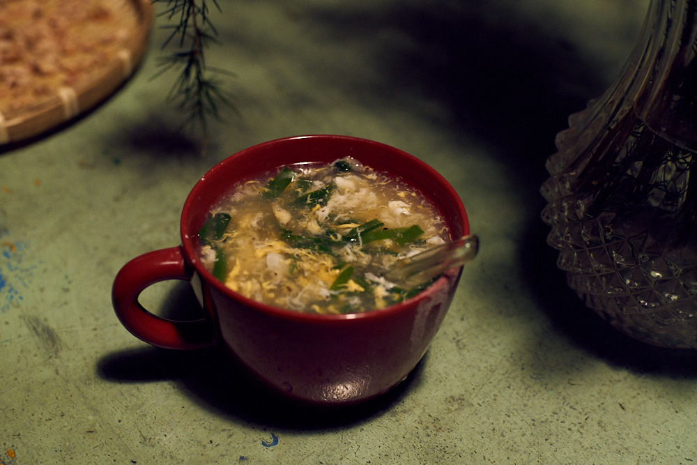 呑んで深夜の帰路、遅くまで空いてる居酒屋とか、バーとかに呑みにいくのはなんか違う。コンビニで未だ飲むんですか?って顔で若い店員さんのレジを待つのもなんだかしっくりとこない。湯を沸かし、そこに鶏ガラスープの素と、ニラ、ナンプラー、卵、片栗粉を順々に入れて最後に胡椒をたっぷりたっぷりと。今日喋ったたくさんの話しのことや、会いたい人の事を考えながら、お腹が温かくなっていくのを片栗粉でこっくりとしたスープを啜りながらゆっくりと感じよう。こういう夜もいいな。