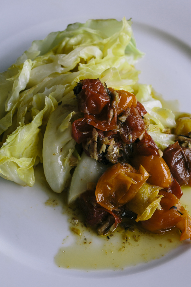 蒸しキャベツとトマトのオイル漬ソース