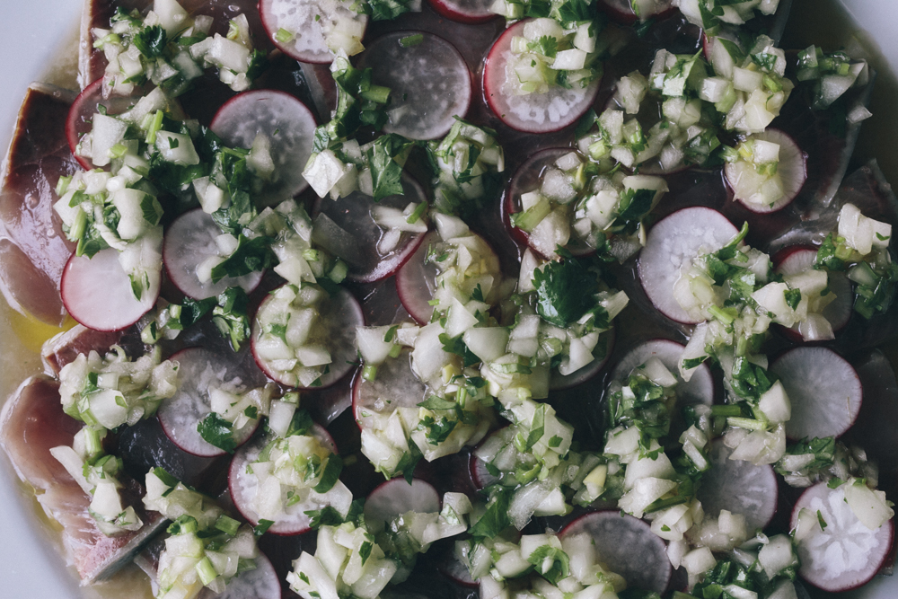 刺身とラディッシュのマリネ