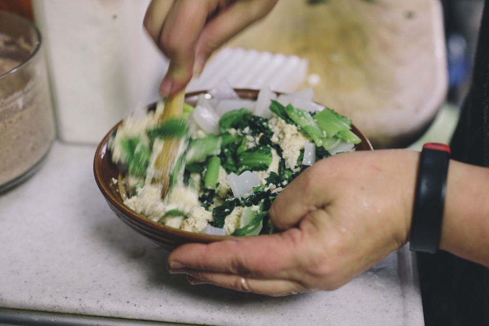 ほうれん草、水切りした豆腐、白こんにゃく、砕いたピーナッツ、麦味噌に砂糖を入れてよく混ぜ合わせます。